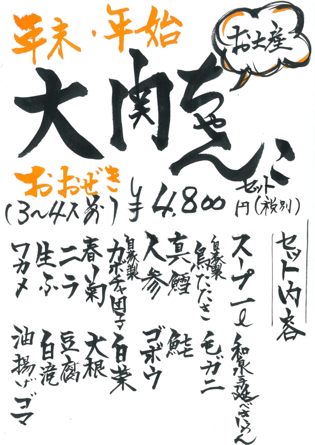 かいせんどころ 梁では、”年末・年始限定”『お土産 大関ちゃんこ鍋セット』販売中です(≧▽≦)