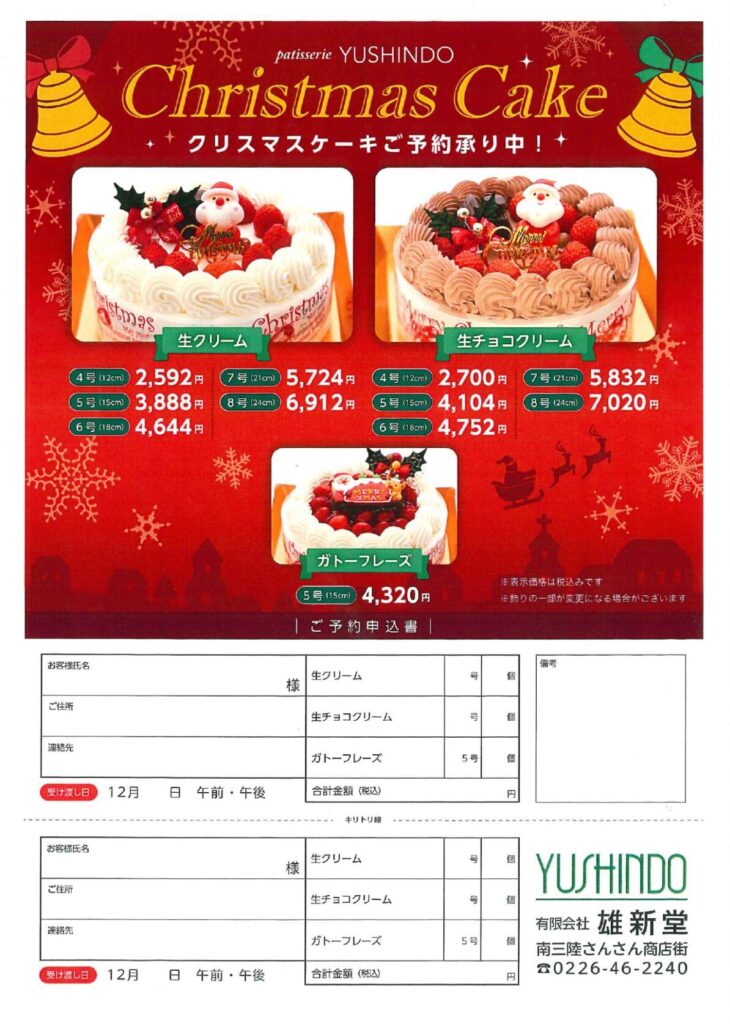 本日は【雄新堂】のクリスマスケーキをご紹介いたします!