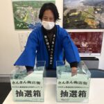 さんさん商店会会長によって「ご来場者500万人達成記念特別賞」・「特賞」の抽選が行われ、「1等」・「2等」はさんさん商店街の管理運営を行う(株)南三陸まちづくり未来社長と事務局スタッフで厳正に抽選いたしました!
