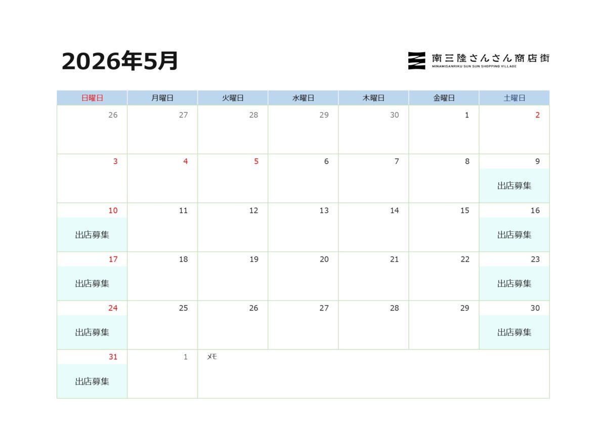 本日は2026年5月の外部出店募集日についてお知らせいたします!