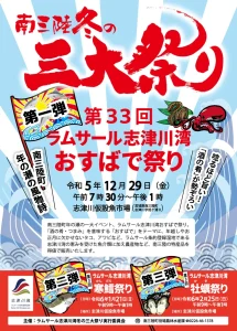 こんにちは! 晴れてますが、寒い南三陸町です。 ここで、お知らせです('◇')ゞ 南三陸の一年はこのイベントが開催されないと終わらない! 今年も年の瀬の一大イベント「おすばで祭り」が、12月29日(金)に開催されます。 南三陸町の年の瀬の一大イベント、ラムサール志津川湾おすばで祭り。 「酒の肴・つまみ」を意味する「おすばで」を...